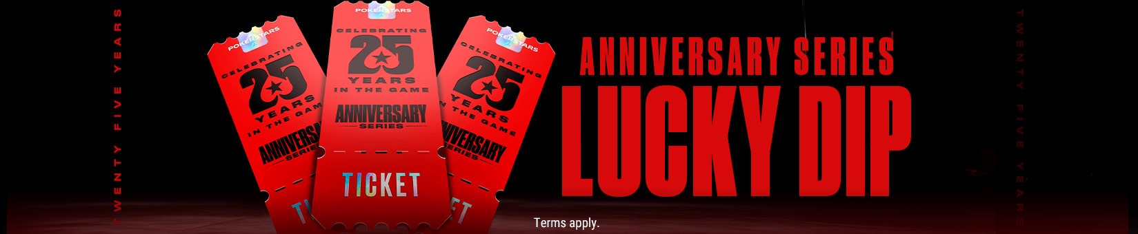 Λάβε μέρος σε ημερήσια Lucky Dip για να εξασφαλίσεις buy-in για το PokerStars Anniversary Series. Αυτή είναι η στιγμή σου. Η ευκαιρία σου. Η κίνησή σου.