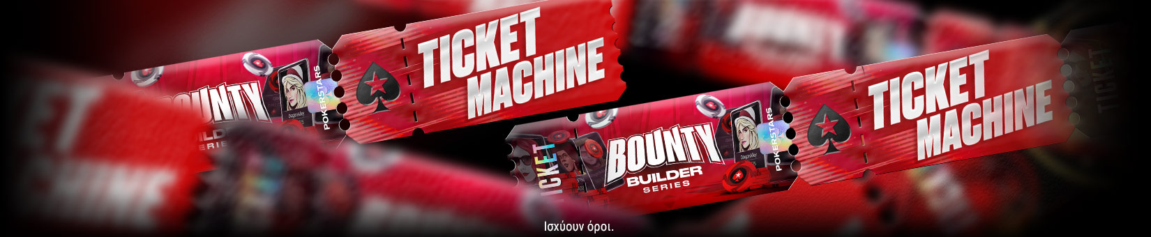 Απλώς δήλωσε συμμετοχή, παίξε σε event Bounty Builder Series και ολοκλήρωσε προκλήσεις αποκλείοντας τους αντιπάλους σου για να κερδίσεις συμμετοχές στις κληρώσεις Ticket Machine που θα πραγματοποιηθούν στις 22 Νοεμβρίου και στις 29 Νοεμβρίου. Μπορείς να διεκδικήσεις εισιτήρια για το Main Event αξίας άνω των $150.000!