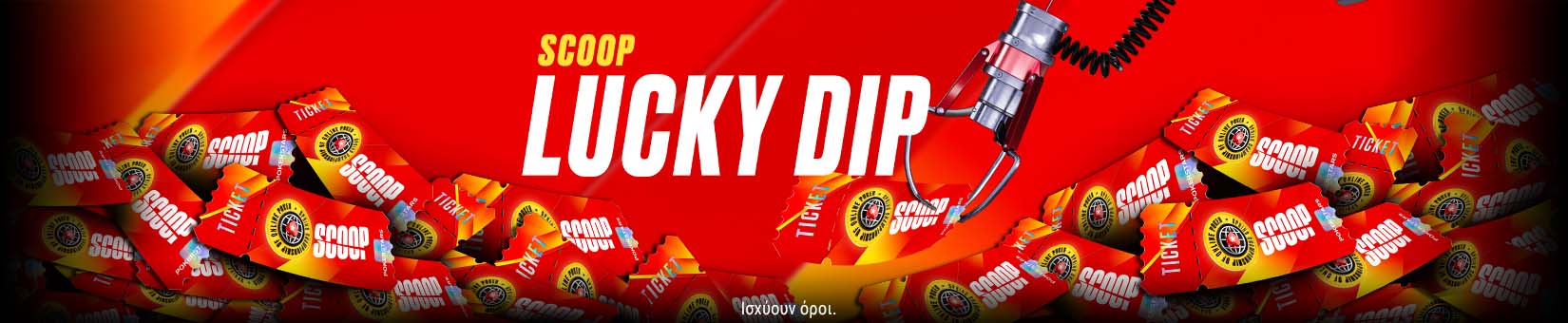 Μπορείς να διαγωνιστείς στους πίνακες κατάταξης SCOOP Lucky Dip μόνο παίζοντας σε event SCOOP πραγματικών χρημάτων, όπως ορίζεται παρακάτω. Η συμμετοχή σε ένα event SCOOP θα υπολογίζεται ως προσπάθεια. Οι παίκτες δικαιούνται απεριόριστο αριθμό προσπαθειών ανά ημέρα.